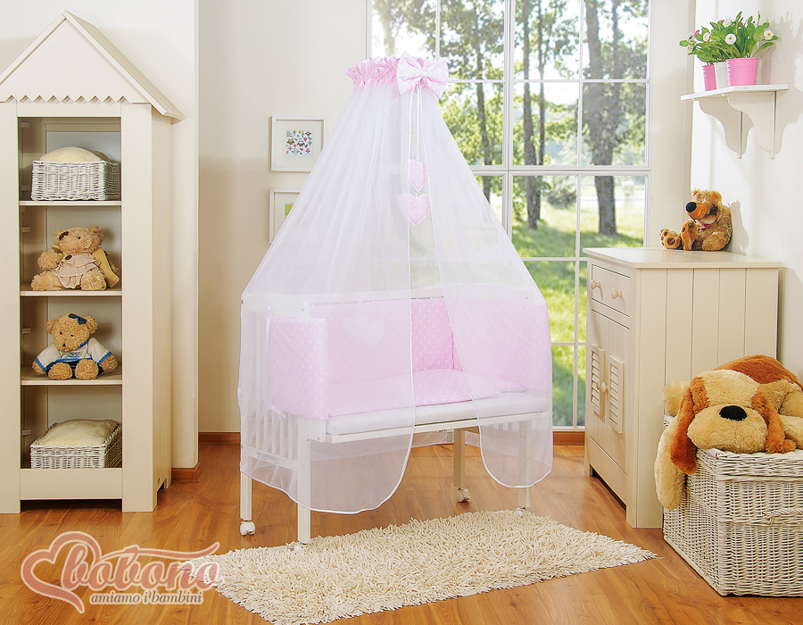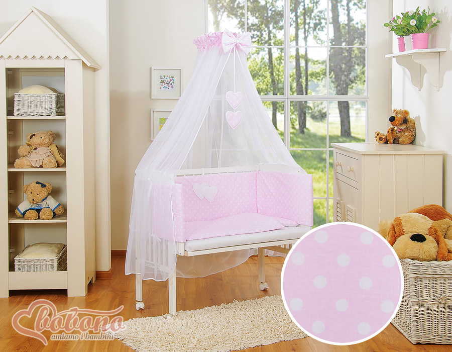 Etusivu » Pinnasänkyyn 120x60 cm » Vauvan sivusänky » Sivusänky patjalla ja vuodevaatesetillä » Sivusänky patjalla ja vuodevaatesetillä - Little Prince/Princess Vaaleanpunainen Valkoisilla Pilkuilla