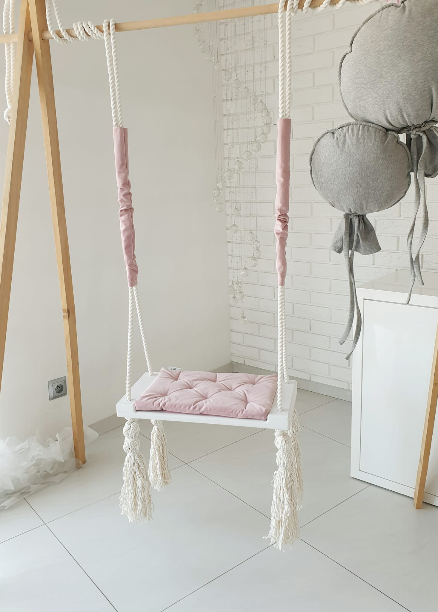 Muistatko lapsuutesi keinut? Oletko koskaan haaveillut, että sinulla voisi olla sellainen kotonasi? Nyt se on mahdollista! Hurmaava vintage-tyylinen keinu tuo lapsellesi iloa ja sopii täydellisesti ruokasaliin, makuuhuoneeseen tai lastenhuoneeseen. Voit myös ripustaa sen terassille. Takaan, että lapsesi tulevat rakastamaan tätä keinuhetkeä! Keinun runko on valmistettu kestävästä massiivipuusta, joka on päällystetty hajuttomalla ja lapsiystävällisellä maalilla. Köyden pituus sopii huoneisiin, joiden korkeus on noin 250/260 cm tai ovenkarmiin, jonka korkeus on 200 cm.