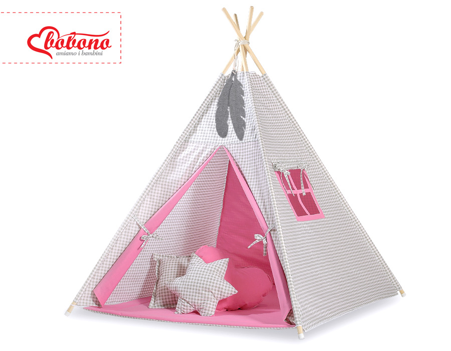 Etusivu » Lelut » Lasten Tiipii-teltat » Minisetti: Lasten tiipii-teltta + leikkimatto » Tiipii-setti: Lasten tiipii-teltta + leikkimatto (+ koristehöyhenet KAUPAN PÄÄLLE!) Vaaleanpunainen Harmaa Ruutukuvio
