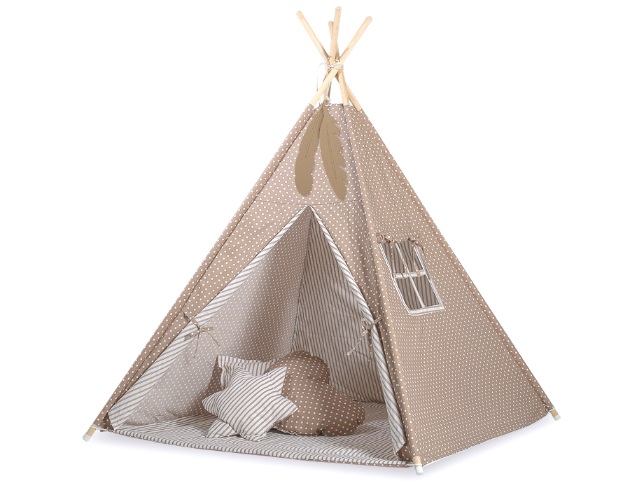 Etusivu » Lelut » Lasten Tiipii-teltat » Megasetti: Lasten tiipii-teltta + leikkimatto + tyynyt » Tiipii-setti: Lasten tiipii-teltta + leikkimatto + tyynyt (+ koristehöyhenet KAUPAN PÄÄLLE!) Valkoisilla Pilkuilla