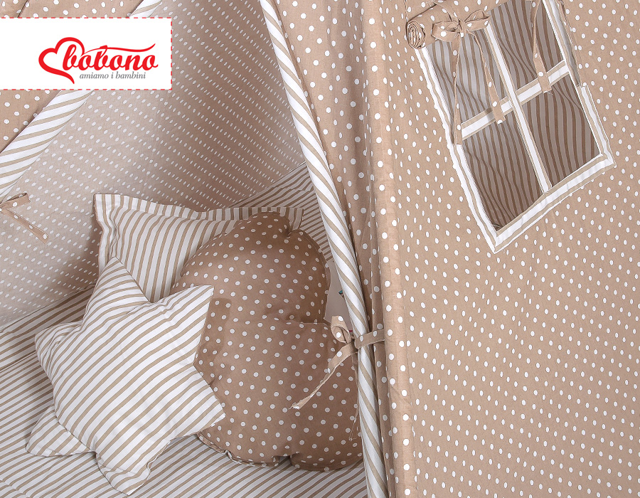 Tiipii-setti: Lasten tiipii-teltta + leikkimatto + tyynyt (+ koristehöyhenet KAUPAN PÄÄLLE!) Valkoisilla Pilkuilla