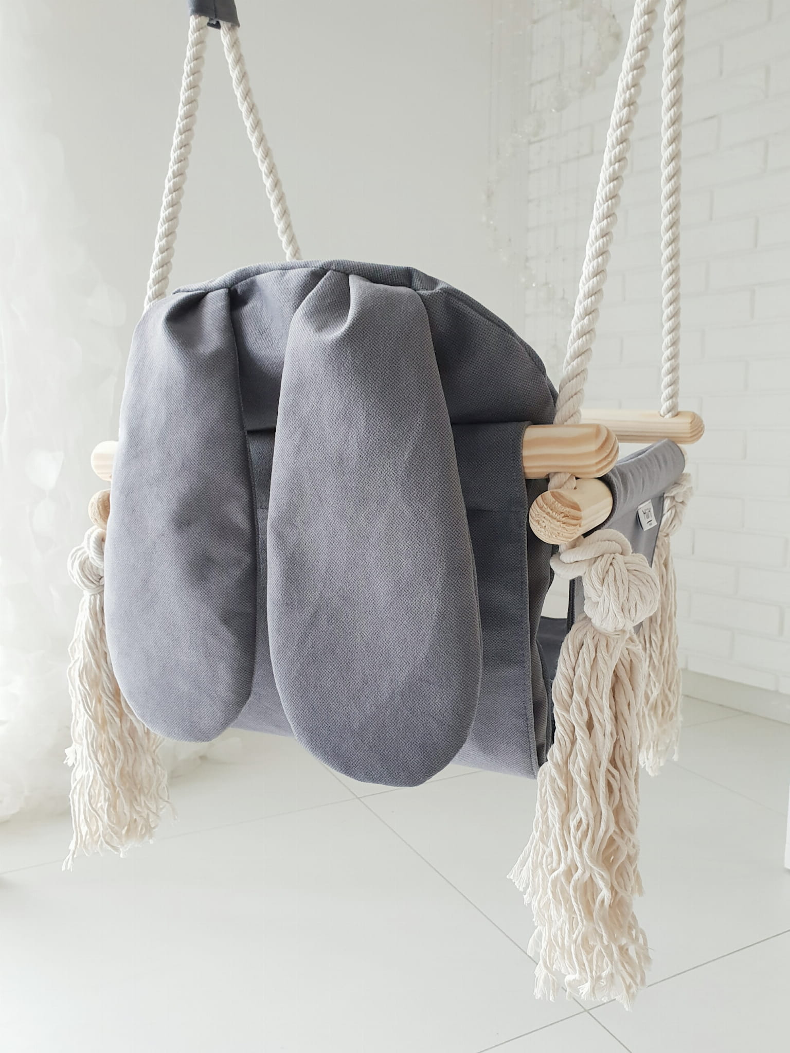 Tilaa nyt tämä ihastuttava tummaharmaa pupu vauvakeinu ja anna lapsellesi iloa ja turvaa!