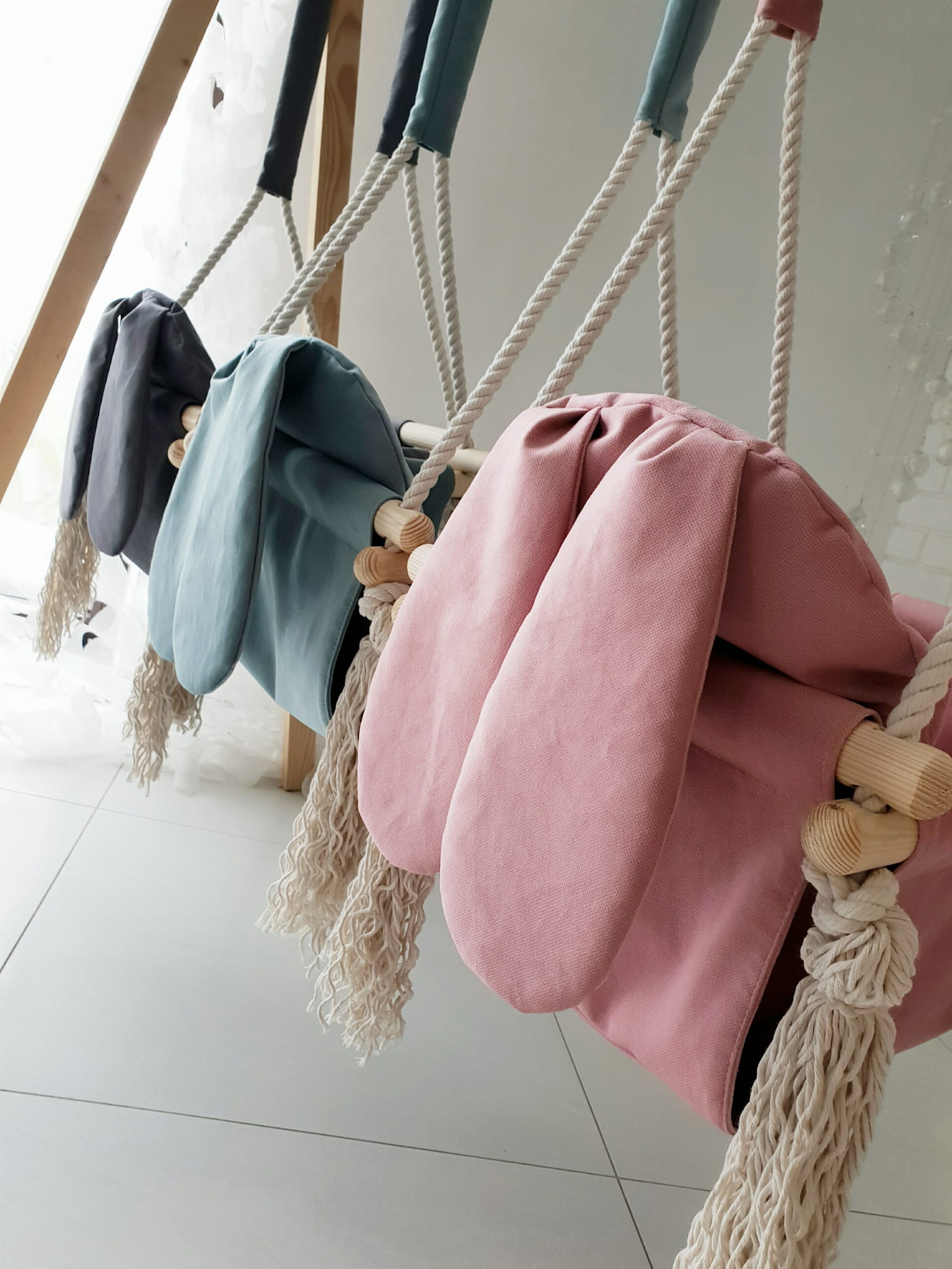 - Materiaali: 100% polyesterikangas, mäntypuu, 100% puuvillaköydet