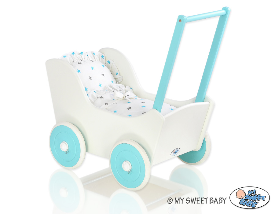 Turkoosi Puiset nuken vaunut (valko-turkoosi) Valkoinen Turkoosi