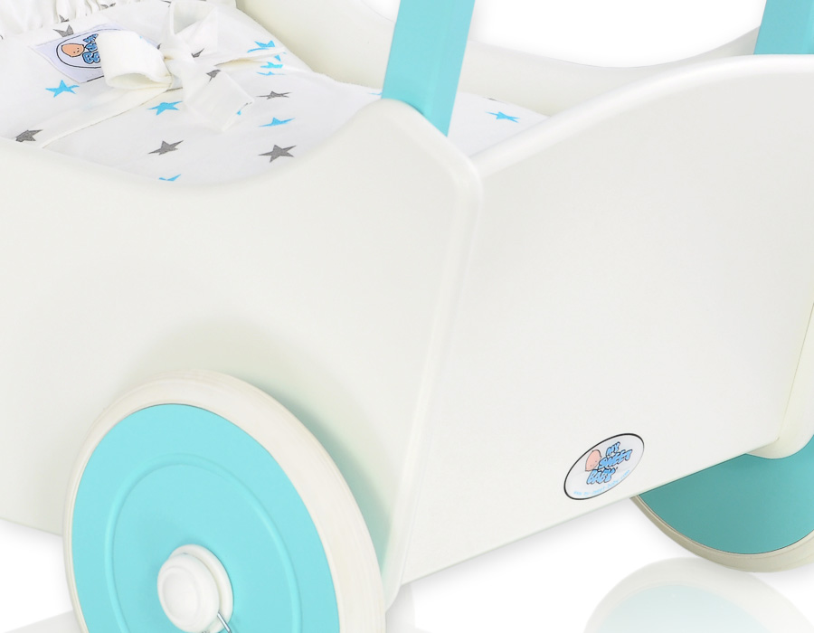 Etusivu » Lelut » Nukenvaunut » Puiset Nukenvaunut » Turkoosi Puiset Nukenvaunut » Turkoosi Puiset nuken vaunut (valko-turkoosi) Valkoinen Turkoosi