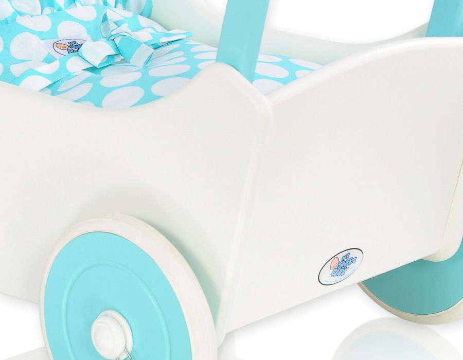 Etusivu » Lelut » Nukenvaunut » Puiset Nukenvaunut » Turkoosi Puiset Nukenvaunut » Turkoosi Puiset nuken vaunut (valko-turkoosi) Valkoinen Turkoosi