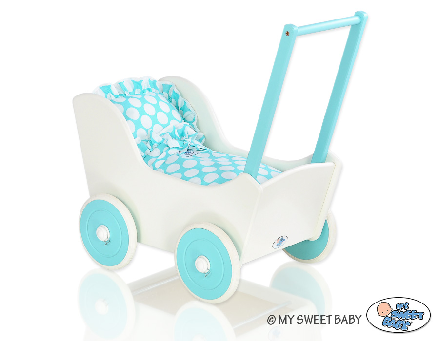 Turkoosi Puiset nuken vaunut (valko-turkoosi) Valkoinen Turkoosi
