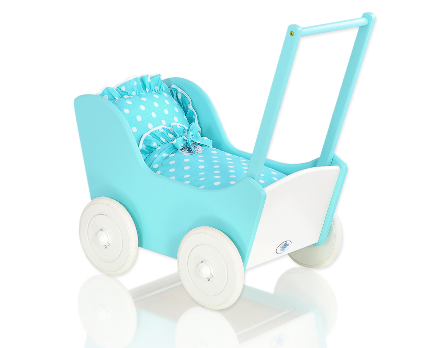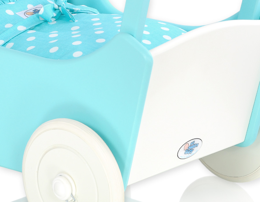Etusivu » Lelut » Nukenvaunut » Puiset Nukenvaunut » Turkoosi Puiset Nukenvaunut » Turkoosi Puiset nuken vaunut (valko-turkoosi) Valkoinen Turkoosi