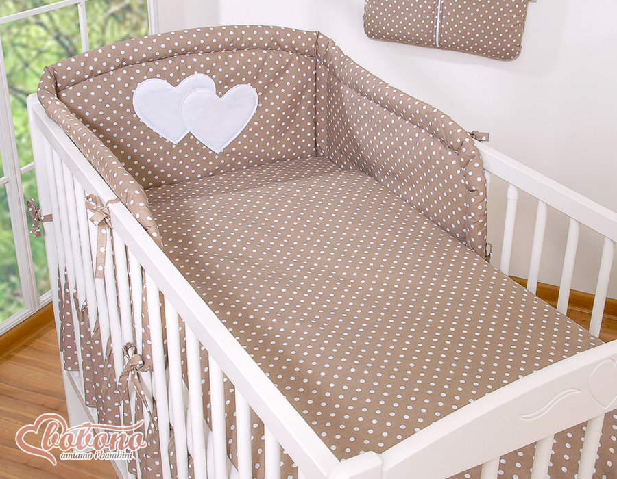Universaali pinnasängyn reunapehmuste - Hanging Hearts Valkoisilla Pilkuilla