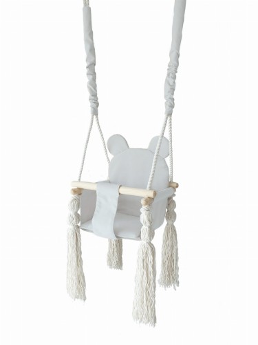 Kauniin vaaleanharmaa nalleaiheinen vauvan keinu on täydellinen lisä kotisi sisustukseen. Tämä käsintehty vauvan keinu tarjoaa lapsellesi turvallisen ja mukavan keinumiskokemuksen, olipa se sitten lastenhuoneessa, parvekkeella tai puutarhassa kauniilla säällä.