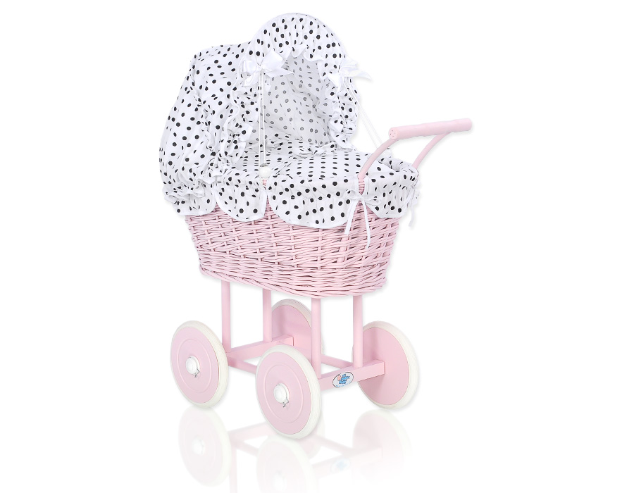 vaaleanpunainen nuken vaunu korikehdolla Valkoinen Musta Valkoisilla Pilkuilla