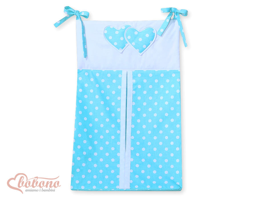 Etusivu » Vuodevaatesetit pinnasänkyyn » Vuodevaatesetit Sydämet » Vaippapussi » Vaippapussi - Hanging Hearts Turkoosi