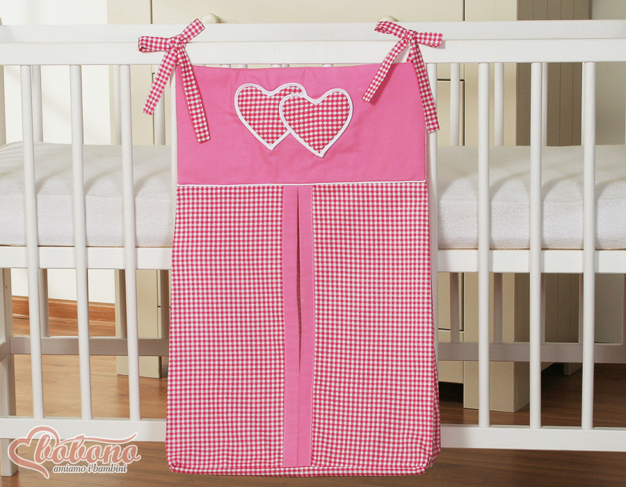 Etusivu » Vuodevaatesetit pinnasänkyyn » Vuodevaatesetit Sydämet » Vaippapussi » Vaippapussi - Hanging Hearts Vaaleanpunainen Ruutukuvio