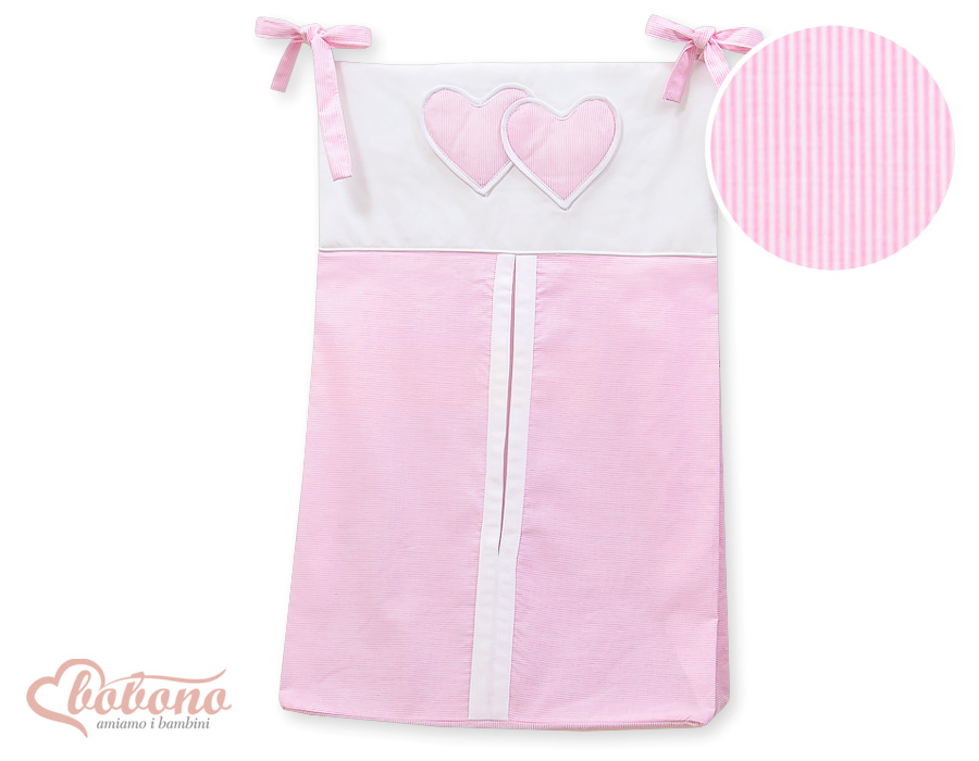 Etusivu » Vuodevaatesetit pinnasänkyyn » Vuodevaatesetit Sydämet » Vaippapussi » Vaippapussi - Leijuvat sydämet Vaaleanpunainen Raidat
