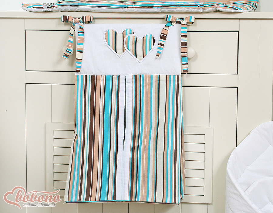 Etusivu » Vuodevaatesetit pinnasänkyyn » Vuodevaatesetit Sydämet » Vaippapussi » Vaippojen säilytyspussi - Hanging Hearts Raidat