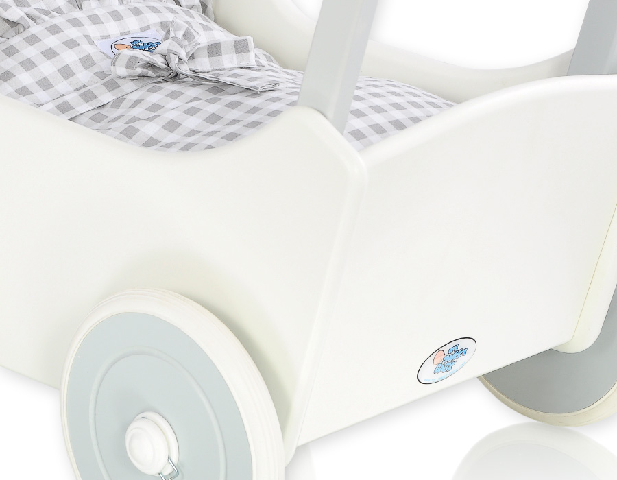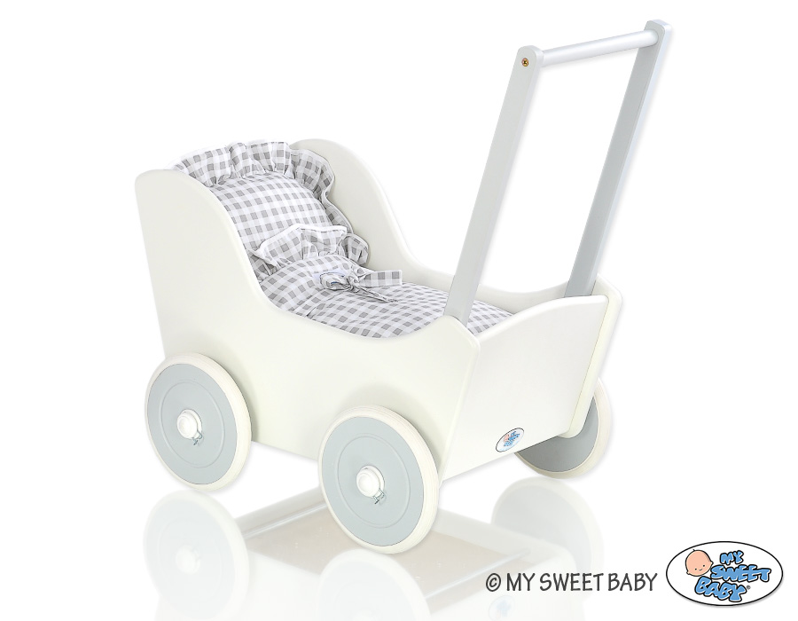 Valko-harmaa Puinen nuken vaunu Valkoinen Harmaa