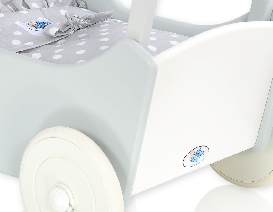Valko-harmaa Puinen nuken vaunu Valkoinen Harmaa