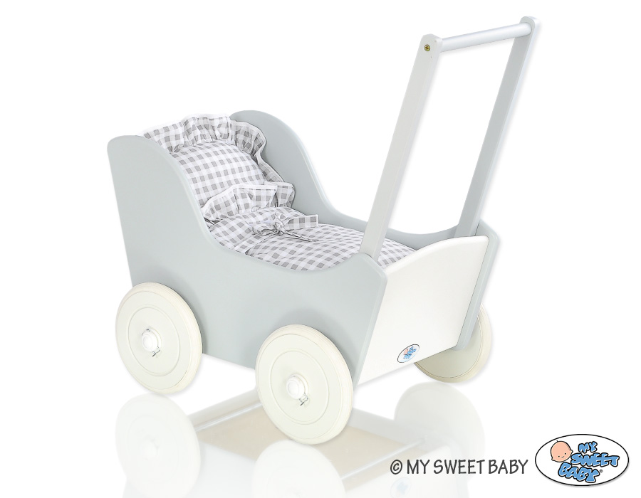 Valko-harmaa Puinen nuken vaunu Valkoinen Harmaa