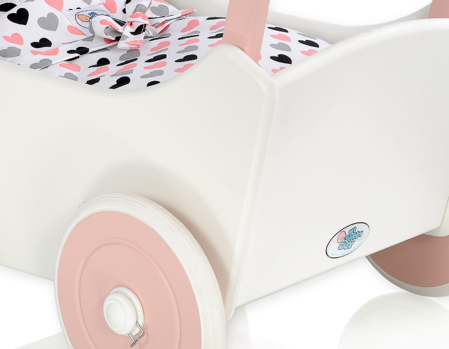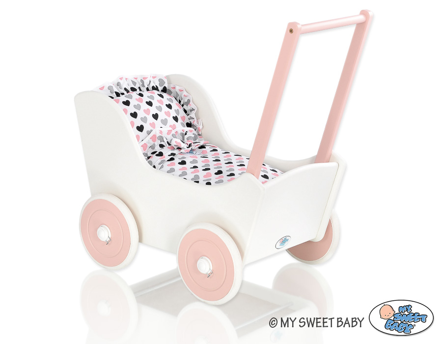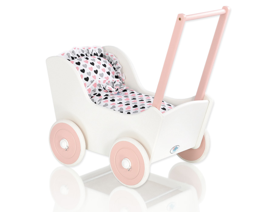 Valko-Jauhe vaaleanpunainen Puinen nuken vaunu Valkoinen