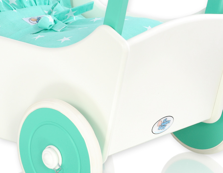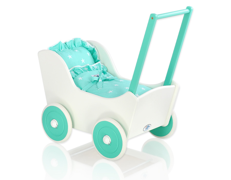 Valko-Minttu Puinen nuken vaunu Minttu Valkoinen