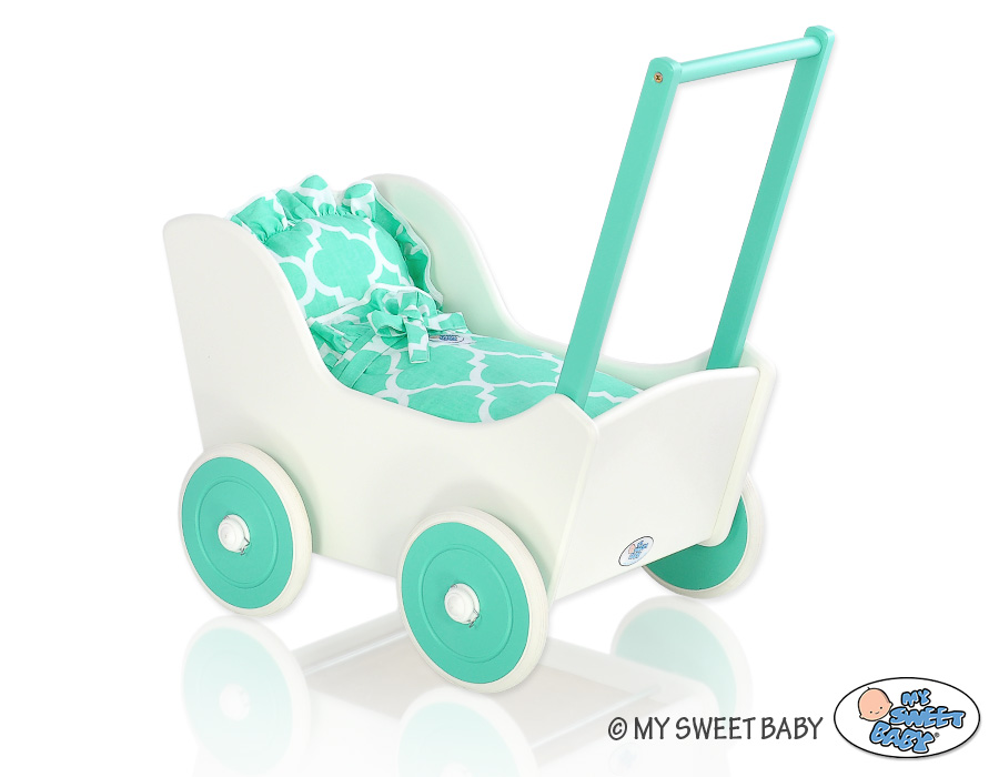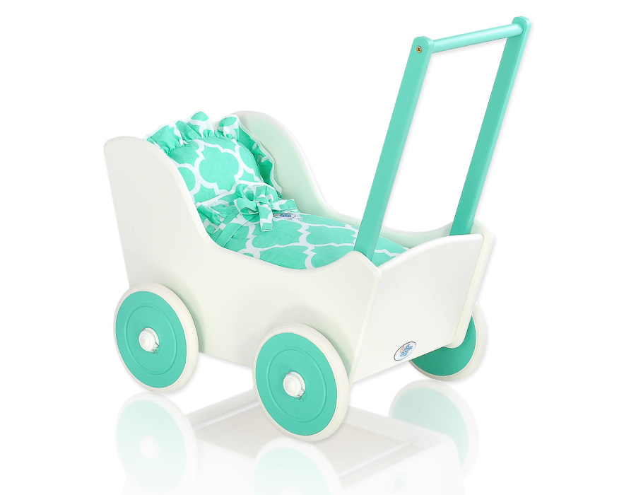 Valko-Minttu Puinen nuken vaunu Minttu Valkoinen