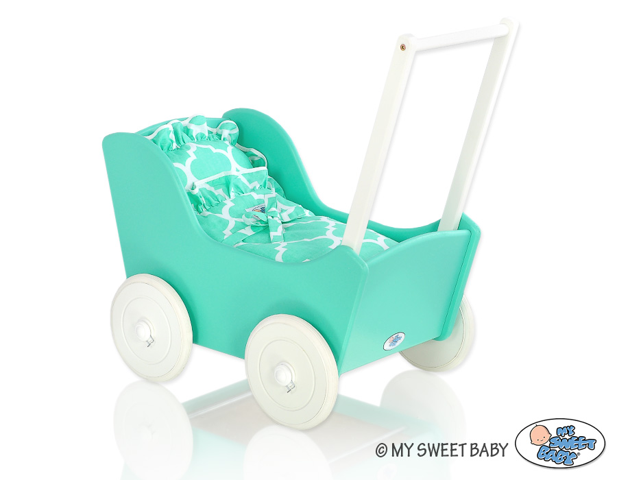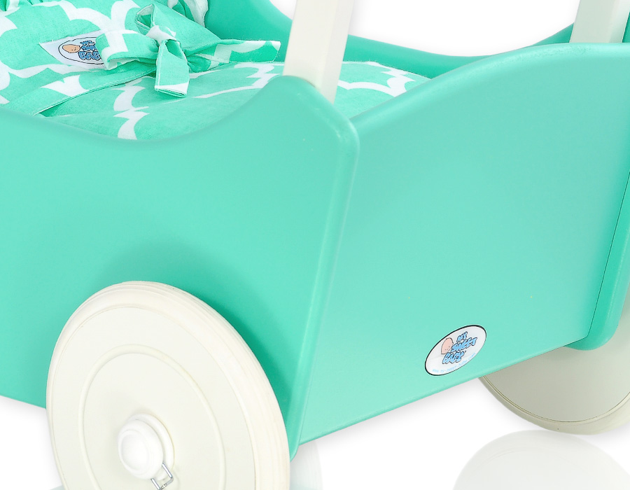 Valko-Minttu Puinen nuken vaunu Minttu Valkoinen
