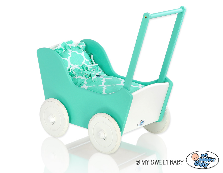 Valko-Minttu Puinen nuken vaunu Minttu Valkoinen