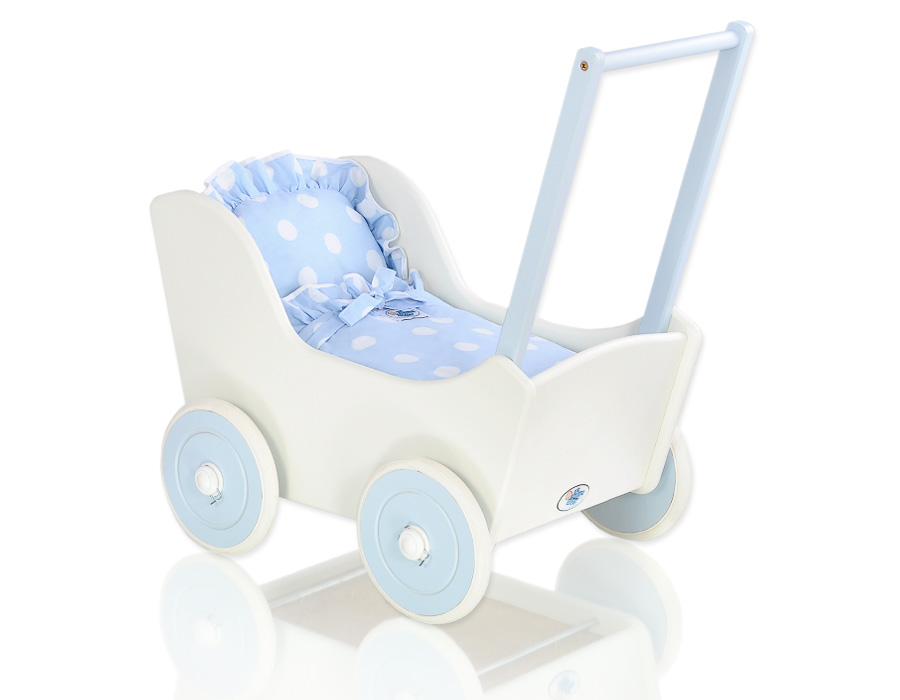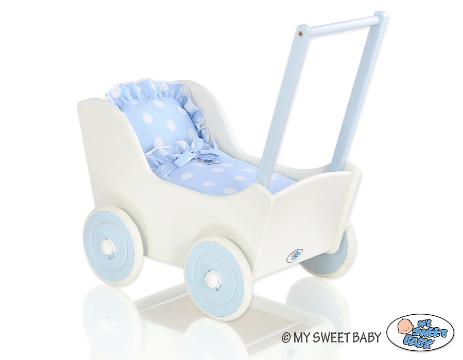 Etusivu » Lelut » Nukenvaunut » Puiset Nukenvaunut » Sininen Puiset Nukenvaunut » Valko-Sininen Puinen leluvaunu Valkoinen Sininen
