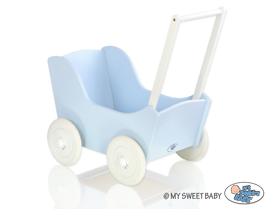 Etusivu » Lelut » Nukenvaunut » Puiset Nukenvaunut » Sininen Puiset Nukenvaunut » Valko-Sininen Puinen leluvaunu Valkoinen Sininen
