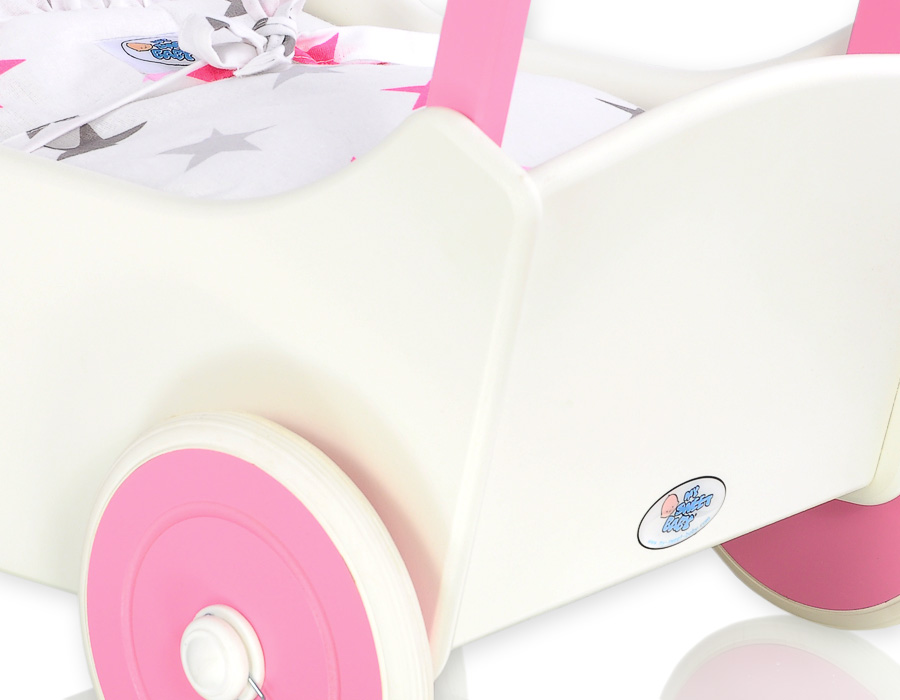 Etusivu » Lelut » Nukenvaunut » Puiset Nukenvaunut » Tumma Pinkki Puiset Nukenvaunut » Valko-Tumma pinkki Puinen nuken vaunu Valkoinen