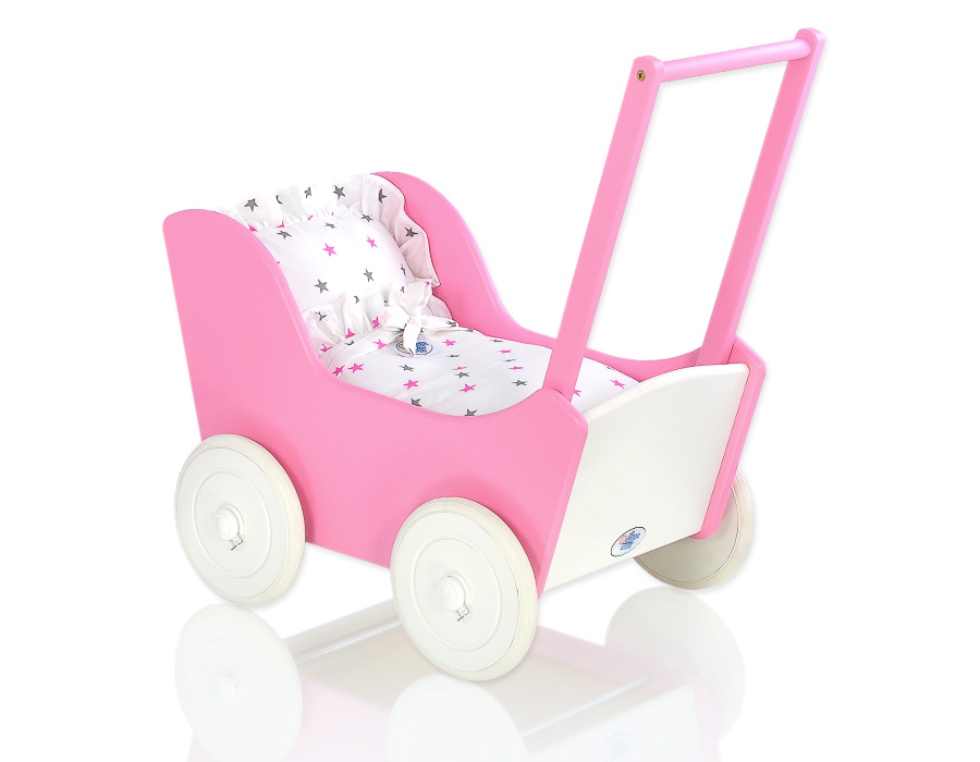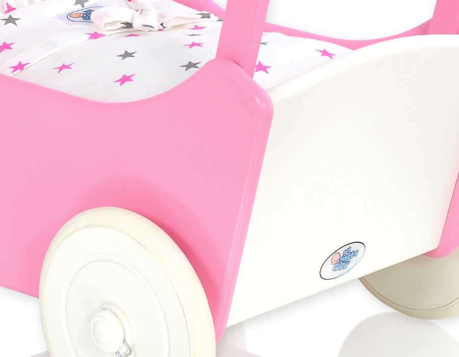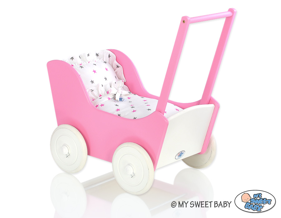 Etusivu » Lelut » Nukenvaunut » Puiset Nukenvaunut » Tumma Pinkki Puiset Nukenvaunut » Valko-Tumma pinkki Puinen nuken vaunu Valkoinen