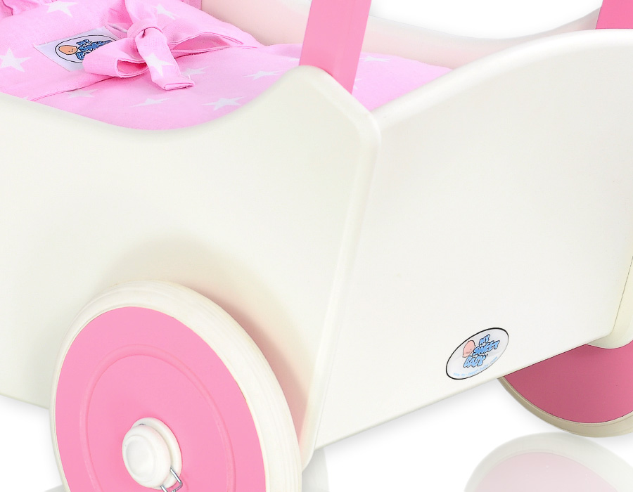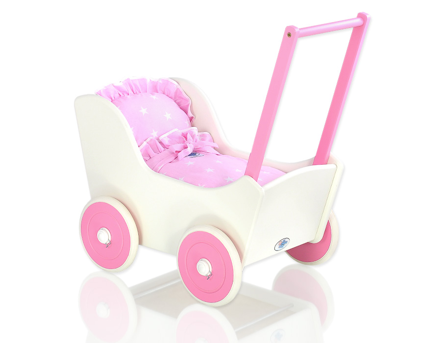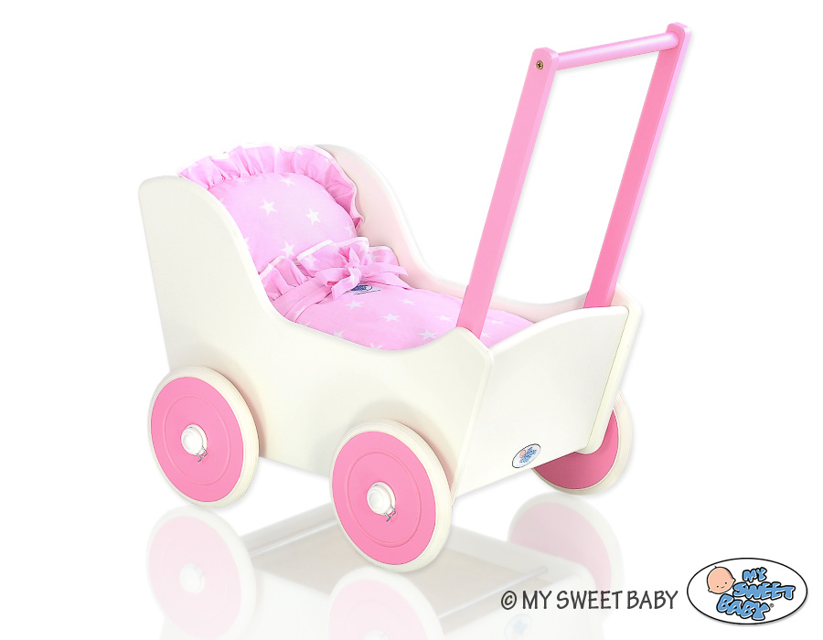 Etusivu » Lelut » Nukenvaunut » Puiset Nukenvaunut » Tumma Pinkki Puiset Nukenvaunut » Valko-Tumma pinkki Puinen nuken vaunu Valkoinen