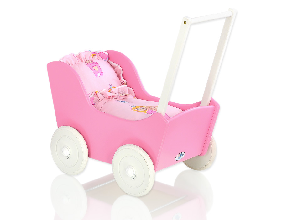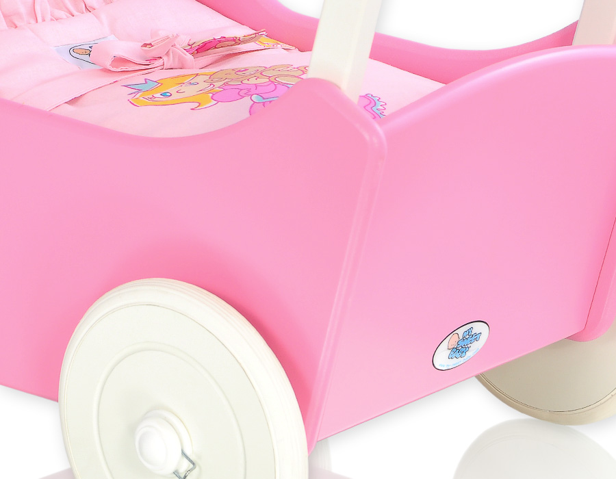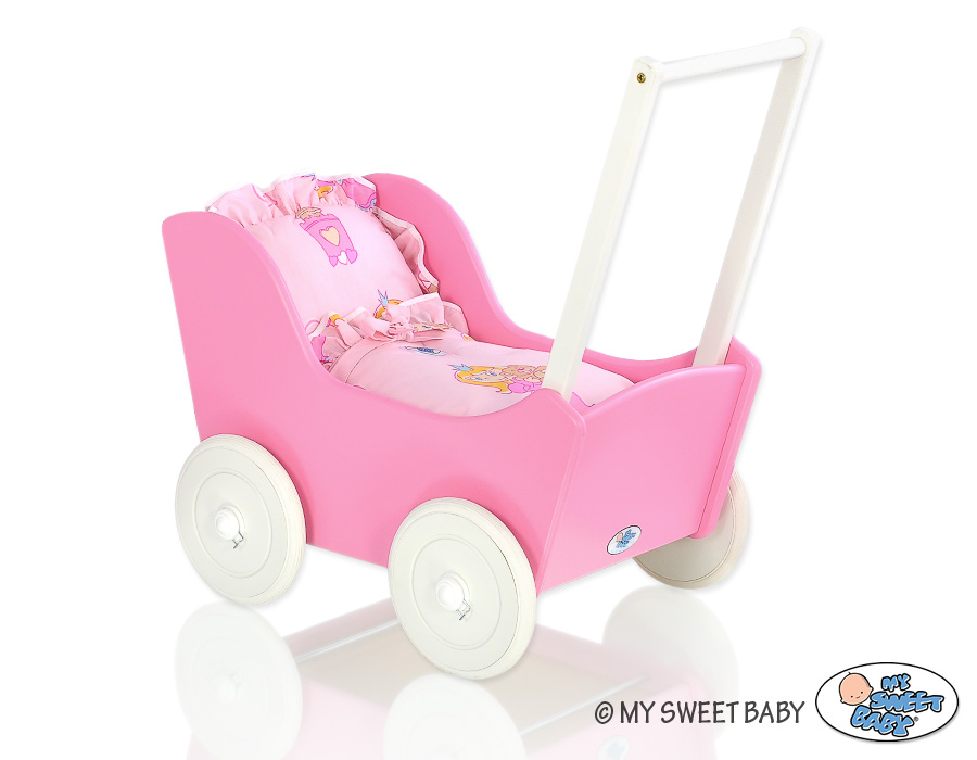 Etusivu » Lelut » Nukenvaunut » Puiset Nukenvaunut » Tumma Pinkki Puiset Nukenvaunut » Valko-Tumma pinkki Puinen nuken vaunu Valkoinen