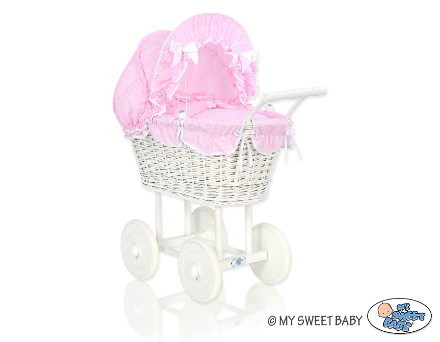Etusivu » Lelut » Nukenvaunut » Punottu Nukenvaunut » Punottu Nukenvaunut Valkoinen » Valkoinen nuken vaunu punotulla korilla Vaaleanpunainen Valkoinen