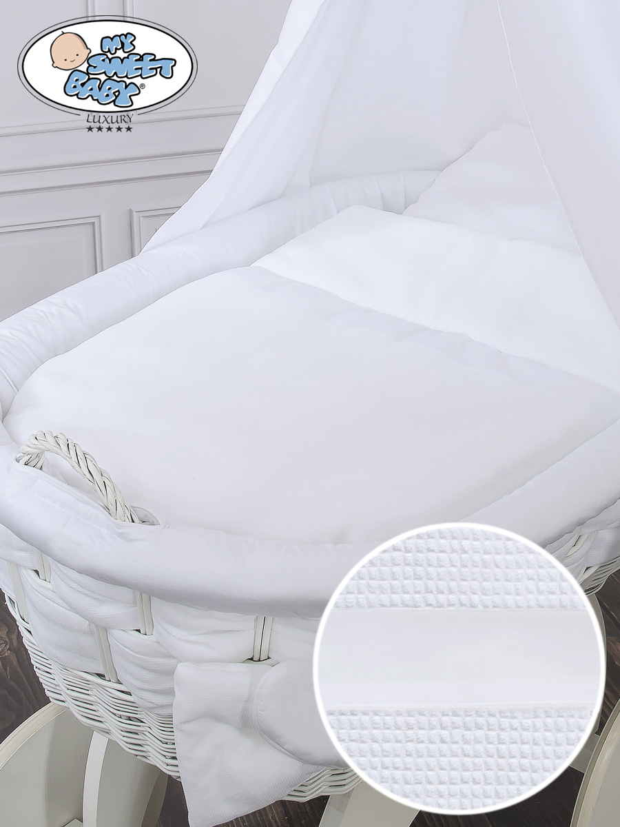 - Koreissa mukana fleece-pehmusteet, jotka on suojattu puuvillakankaalla. Nukuta vauva ihanan pehmeään koriin.