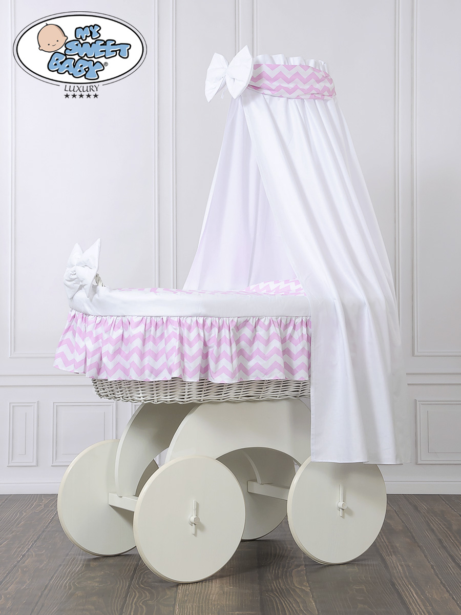 - Koreissa mukana fleece-pehmusteet, jotka on suojattu puuvillakankaalla. Nukuta vauva ihanan pehmeään koriin.
