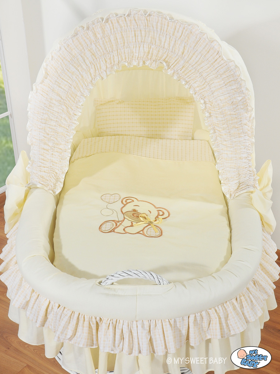 - Koreissa mukana fleece-pehmusteet, jotka on suojattu puuvillakankaalla. Nukuta vauva ihanan pehmeään koriin.