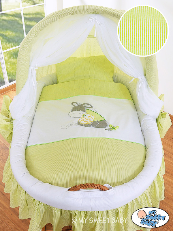 - Settiin kuuluu kehdon pehmusteet ja kaunis kupu, kuten kuvassa.