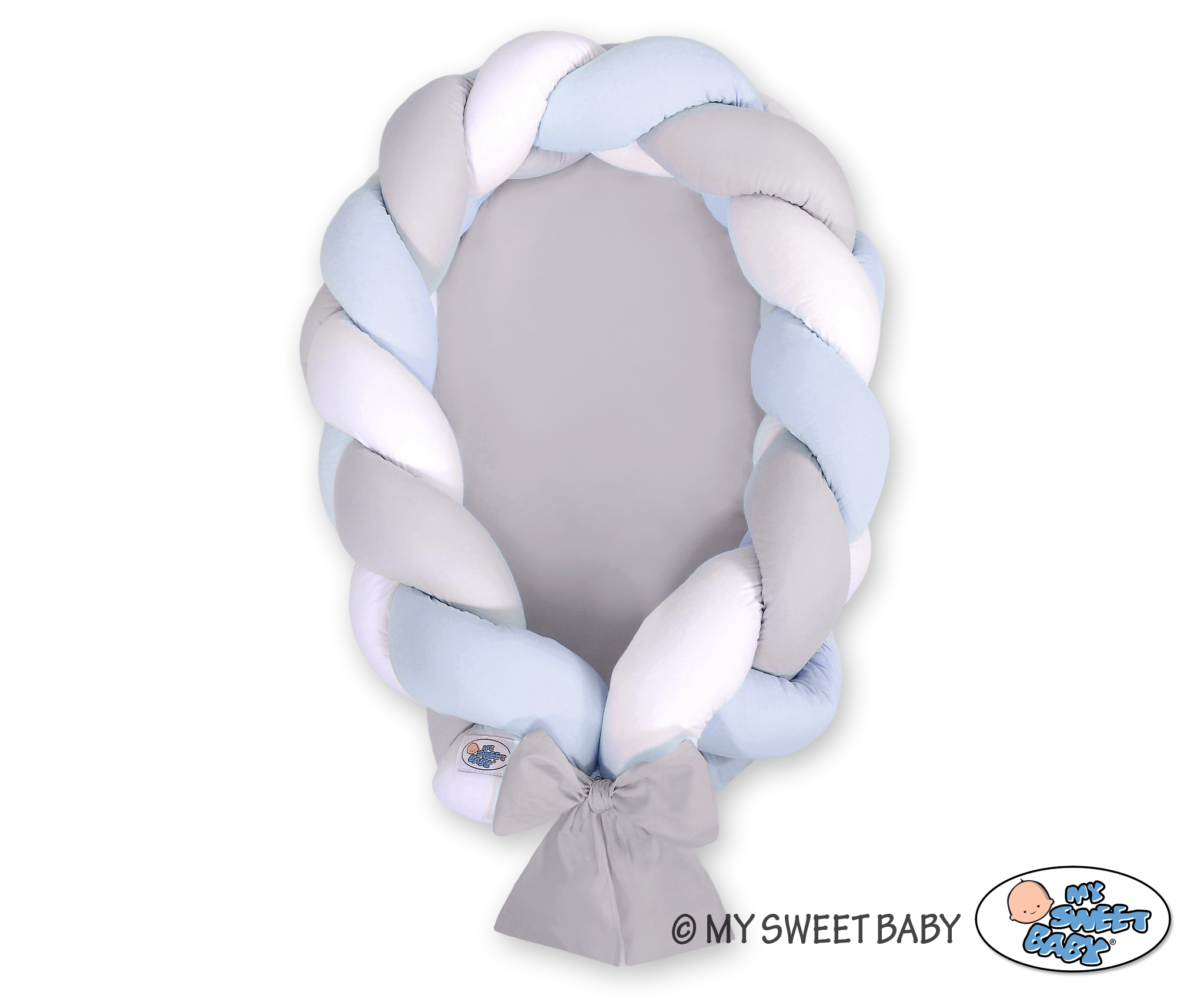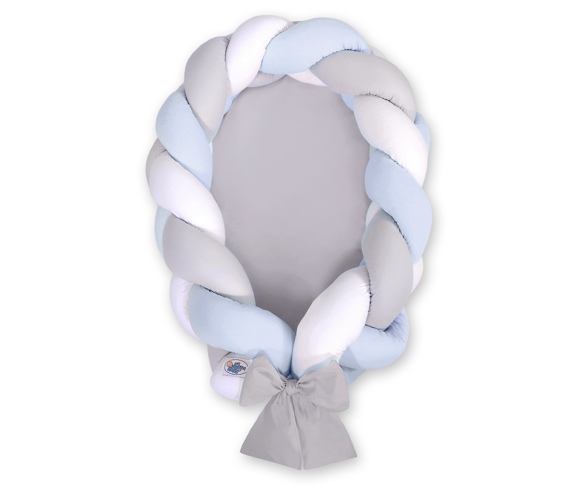 Etusivu » Letti kokoelma » Unipesä Reunapehmuste Letti 2in1 » Vauvan lepopesä palmikko 2in1 Valkoinen Harmaa Sininen