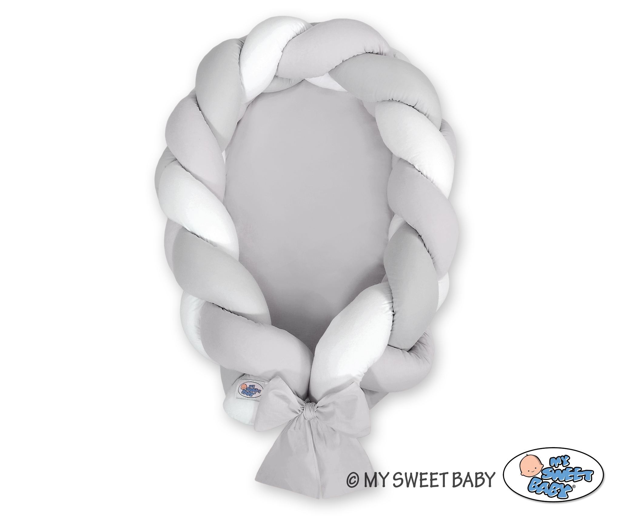 Etusivu » Letti kokoelma » Unipesä Reunapehmuste Letti 2in1 » Vauvan palmikko pesä + reunapehmuste Valkoinen Harmaa