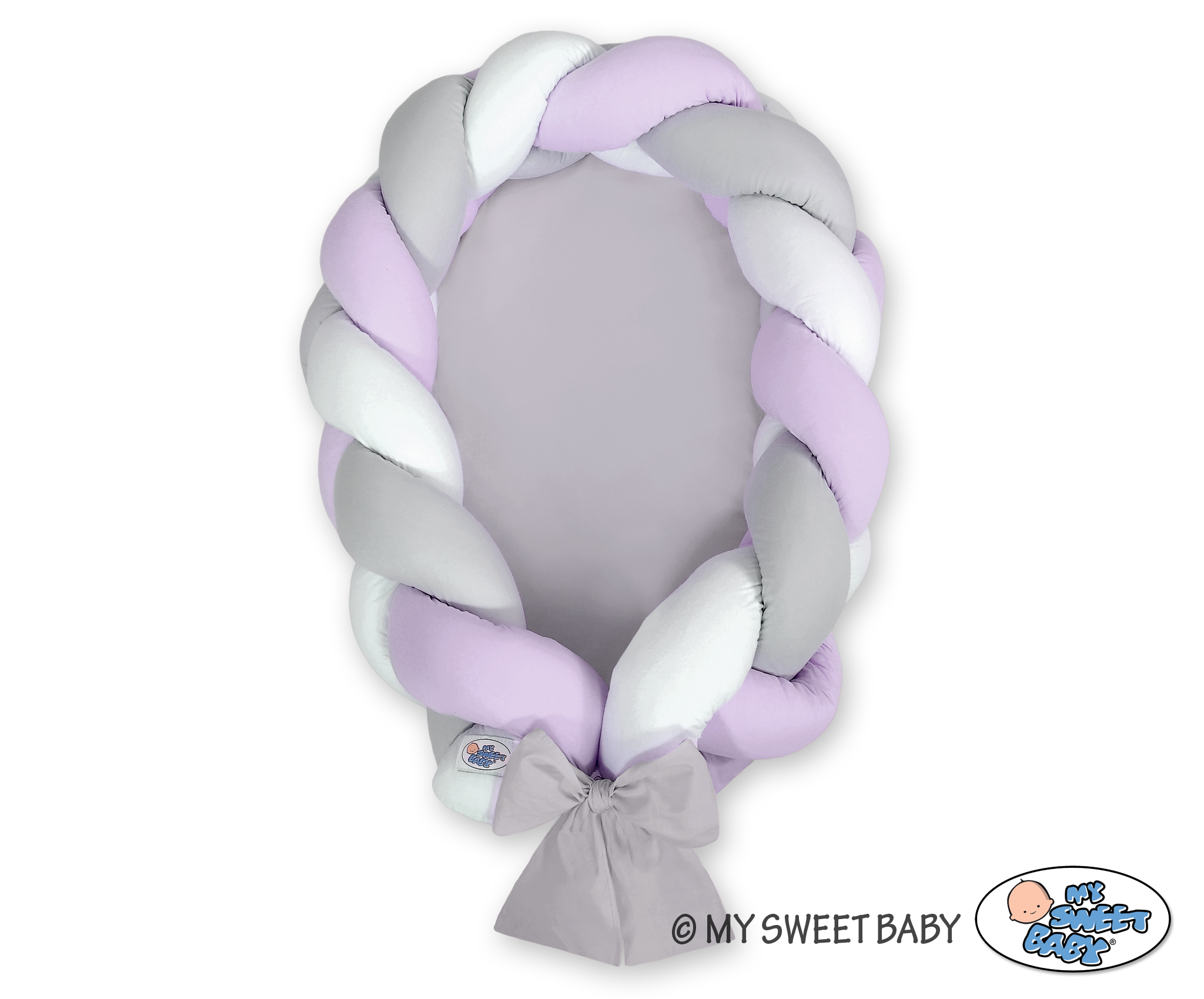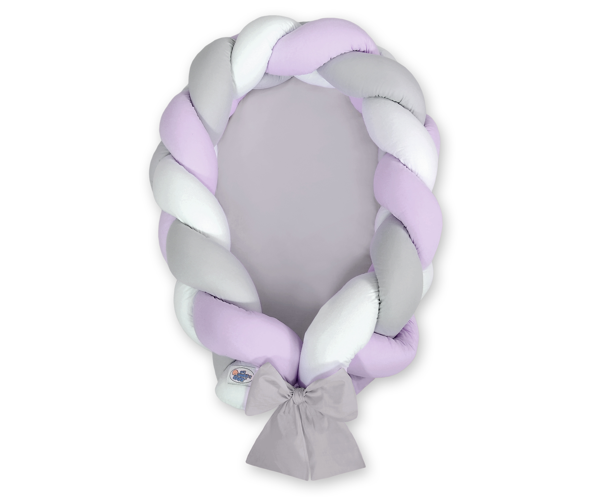 Etusivu » Letti kokoelma » Unipesä Reunapehmuste Letti 2in1 » Vauvan pesä palmikko + reunapehmuste Violetti Valkoinen Harmaa