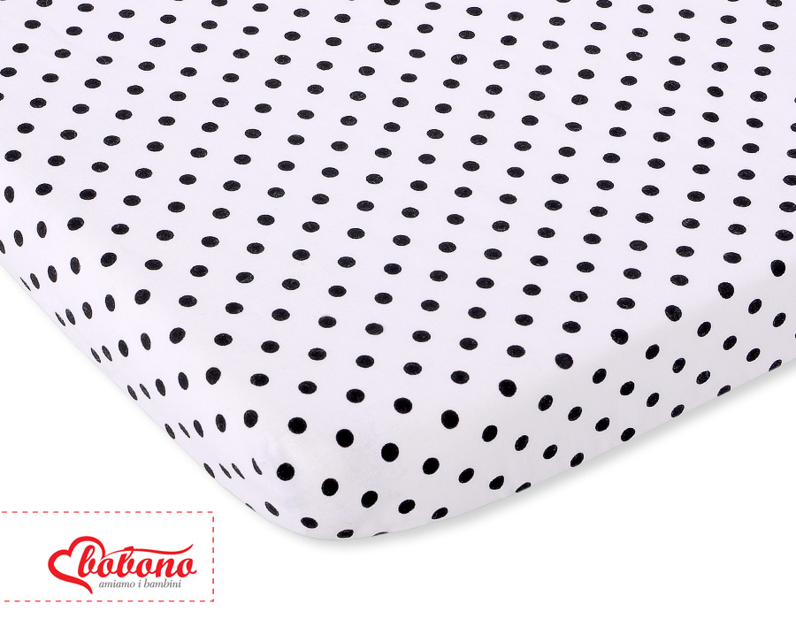 Etusivu » Vuodevaatesetit pinnasänkyyn » Lakana » Lakana pinnasänkyyn » Lakana pinnasänkyyn 120x60cm » Puuvilla-lakana sänkyyn 120x60cm » Vauvan puuvilla-lakana Musta Valkoisilla Pilkuilla Puuvilla