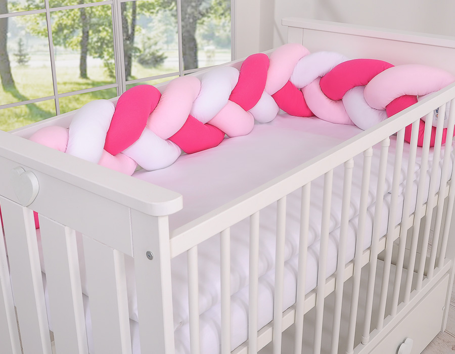 Mielenkiintoisen ja kauniin näköinen, pehmeä, letitetty reunapehmuste on 100% puuvillaa. Sen pystyy sitomaan pinnoihin kiinni.
