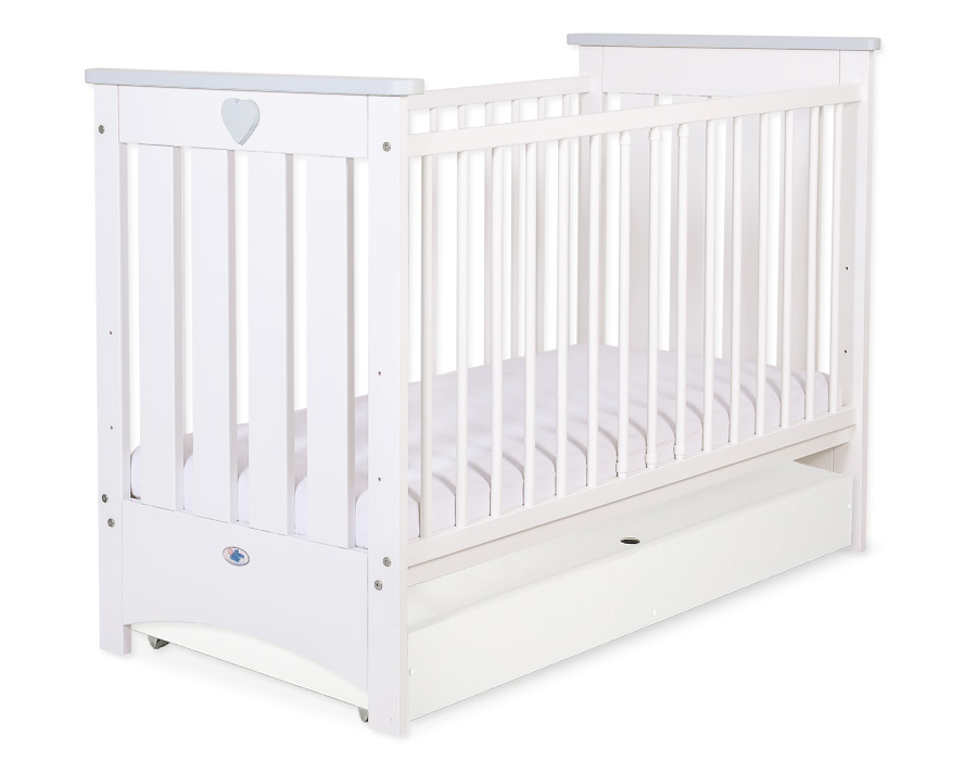 Etusivu » Pinnasänkyyn 120x60 cm » Pinnasängyt laatikolla » Pinnasänky laatikolla Lorenzo Valkoinen » Vauvan sänky 120x60cm Lorenzo + Vetolaatikko vauvan sänkyyn STANDARD Valkoinen Harmaa