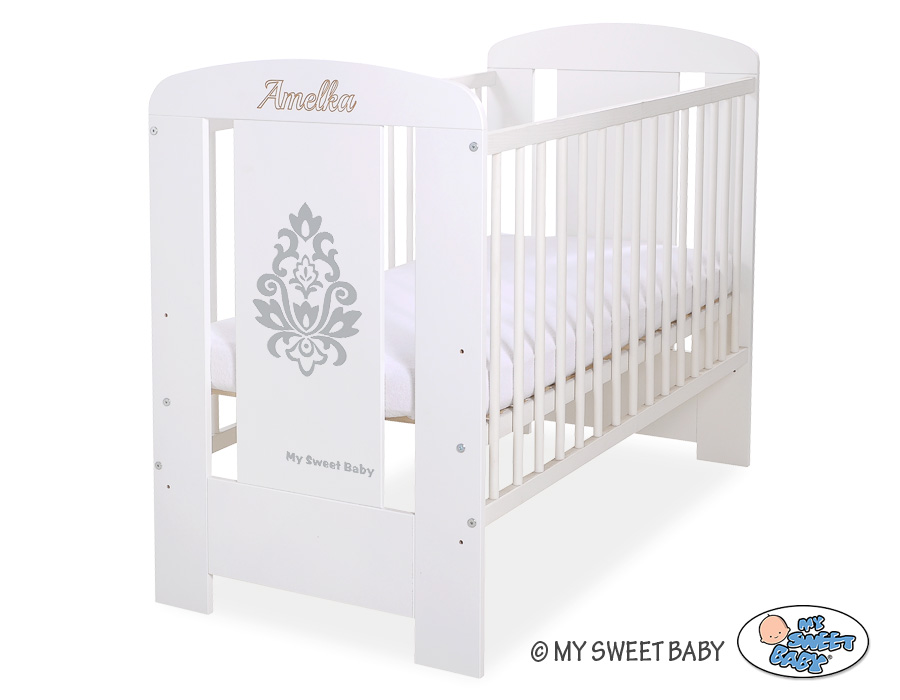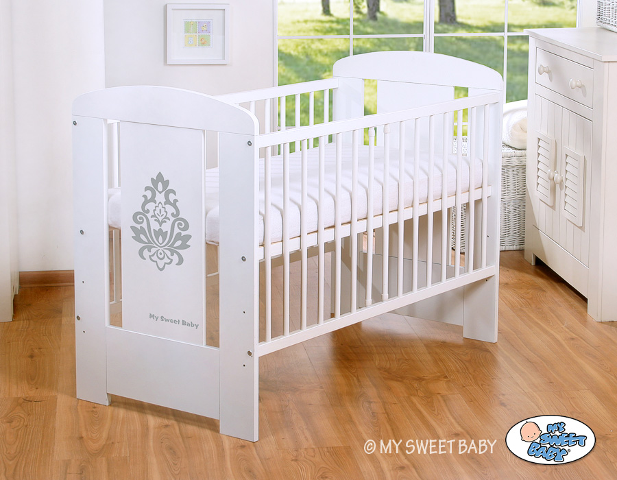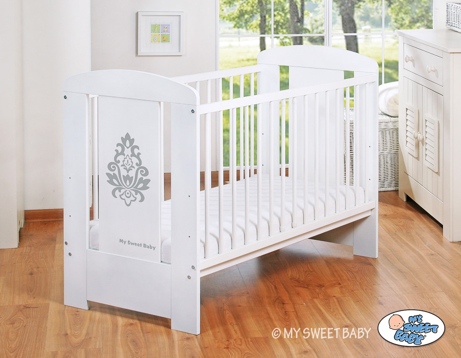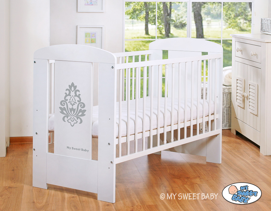 Etusivu » Pinnasänkyyn 120x60 cm » Pinnasänky Glamour Kokoelma » Vauvan sänky 120x60cm Valkoinen Harmaa Glamour