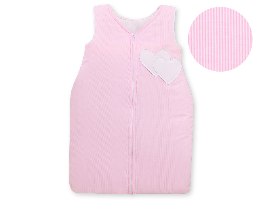 Etusivu » Vuodevaatesetit pinnasänkyyn » Vuodevaatesetit Sydämet » Unipussi » Vauvan unipussi - Hanging Hearts Vaaleanpunainen Raidat