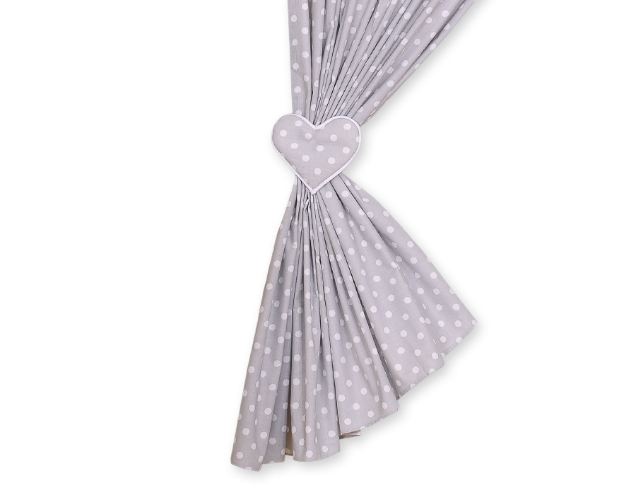 Etusivu » Vuodevaatesetit pinnasänkyyn » Vuodevaatesetit Sydämet » Verhot vauvan huoneeseen » Vauvan verhot - Hanging Hearts Harmaa Valkoisilla Pilkuilla