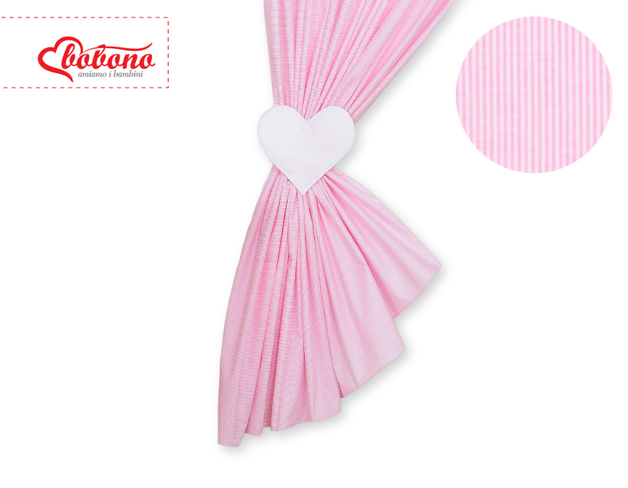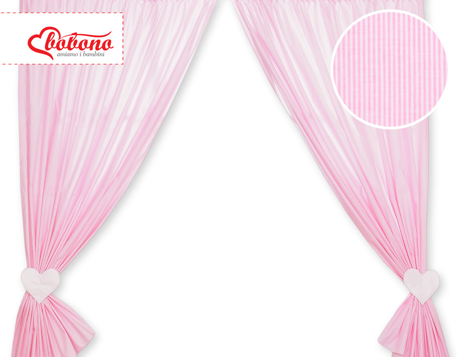 Etusivu » Vuodevaatesetit pinnasänkyyn » Vuodevaatesetit Sydämet » Verhot vauvan huoneeseen » Vauvan verhot - Hanging Hearts Vaaleanpunainen Raidat