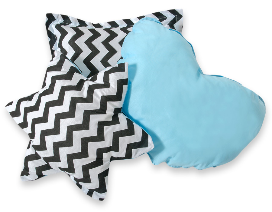 Pehmeät ja muhkeat tyynyt sopivat tiipii-leikkimaton väritykseen. Jokainen tyyny on kaksivärinen ja erimuotoinen, toinen puoli eri materiaalia. Sopii myös väripilkuksi lastenhuoneeseen.