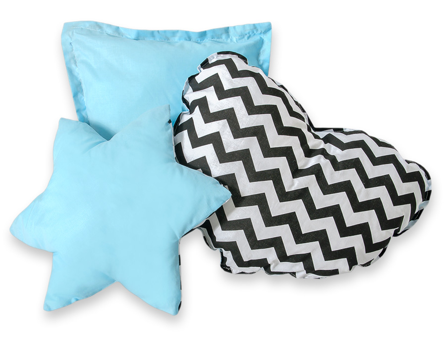 Etusivu » Lelut » Lasten Tiipii-teltat » 3-tyynyn setti » Vauvatyynyt 3kpl setti Musta Sininen Siksak